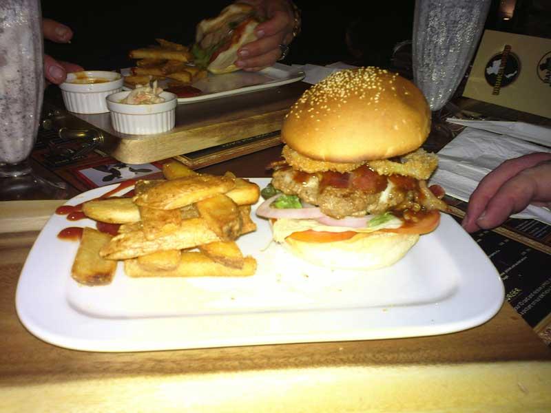5. Stop 1: Duke's Express Stop 2: Bully's Pub Stop 3: Bangkok Burger Company Stop 4: Iron Fairies Stop 5: Roadhouse Roadhouse BBQ: I have eaten at the Roadhouse many times over the years and always have a good time there. The prices are a bit high but the food is good and it is close to the gay bars. Corner of Surawong & Rama 4, Tel. 02-236-8010, Website: www.roadhousebarbecue.com The boys and I went today to test their burgers. We all tried a burger with different cheese and different toppings. We also had beer and soda. The burgers are made of Australian beef and they taste pretty good. The bacon is cooked great and not raw like a lot of places in Thailand serve them. The fries are tasty but full of grease. So much grease in fact, the boys put a napkin on one and it was drenched with grease. The burgers are 345 each and IMHO, that is too much for what you get. Both the burgers at Iron Fairies and BBC are better burgers and we left with a much better feeling. All three of us gave the burgers 3 out of 5. And we gave the place a few marks down for prices and fries. So, we give it a 2.5 out of 5 total. If you are in the area, the burgers are good. They are just not the quality of Bully's, Iron Fairies or Bangkok Burger Company. However, if you have a craving for a burger in the area, drop by and I'm sure you will not be disappointed. I have had their ribs on several occasions and they were good. Most of the time.